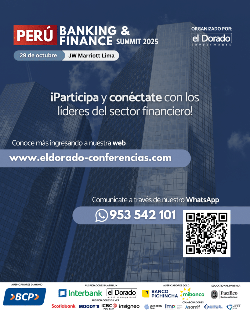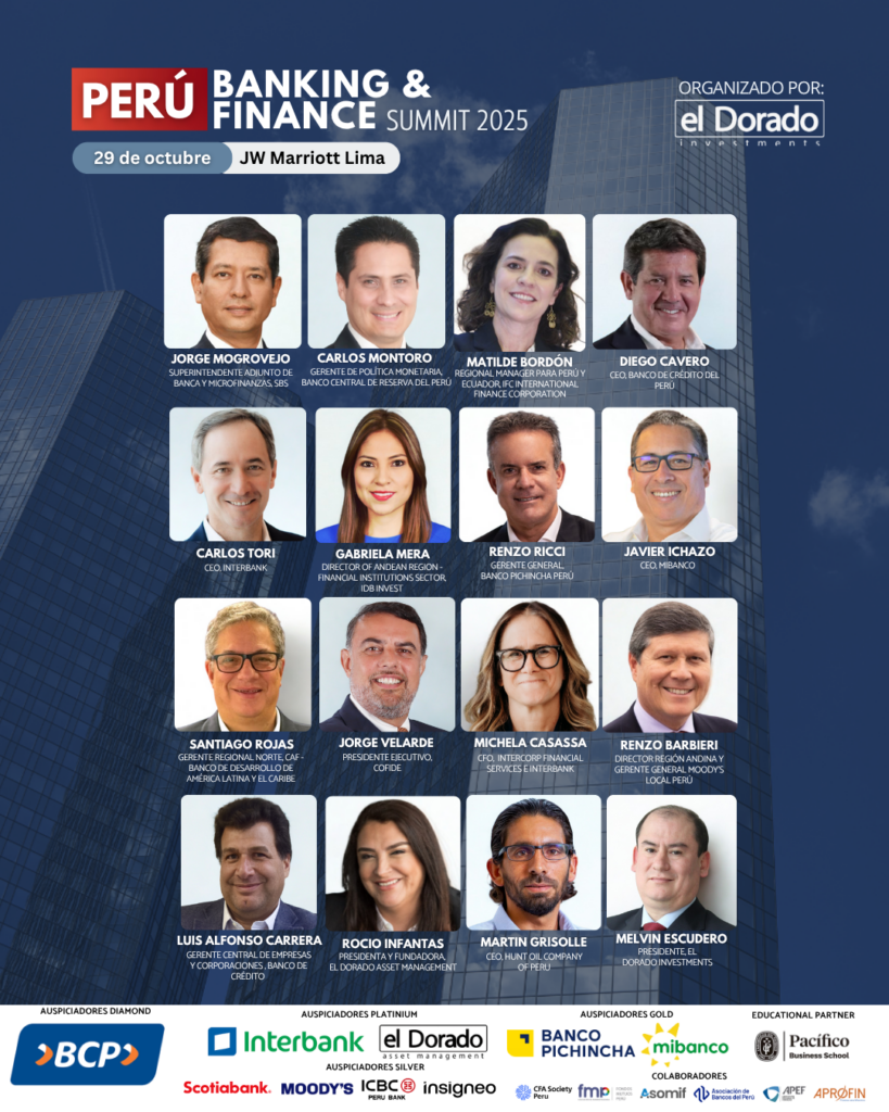 Organizado por El Dorado Investments, el Summit reunirá a las principales autoridades económicas, líderes del sistema financiero, empresarios e inversionistas, incluyendo representantes del MEF, BCRP, SBS, y CEOs y CFOs de bancos, fintech y grandes corporaciones del país y la región.